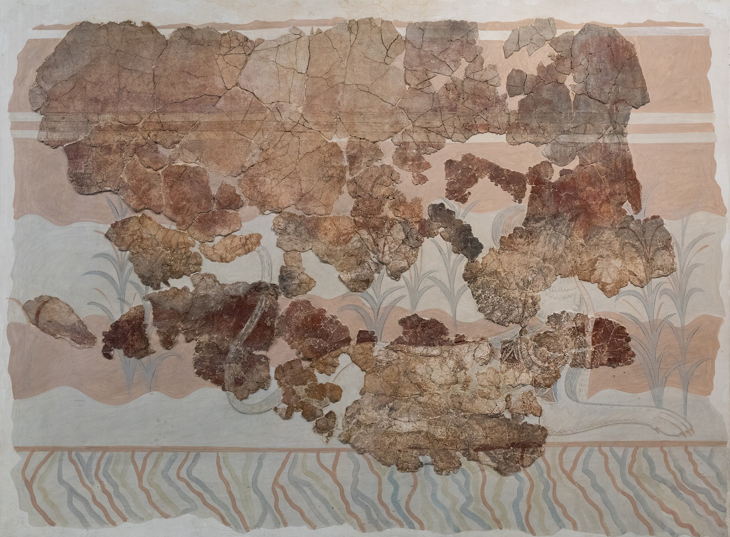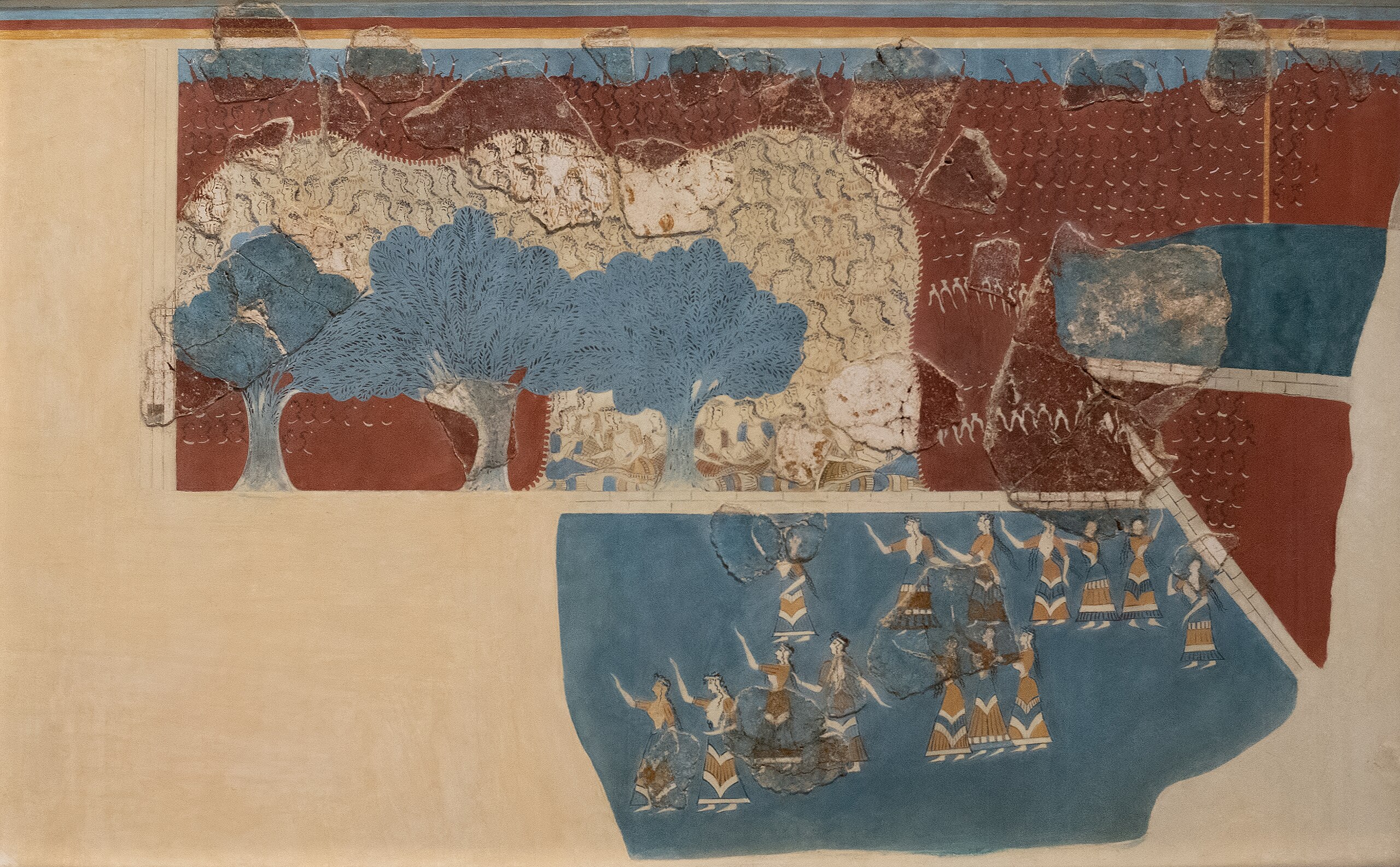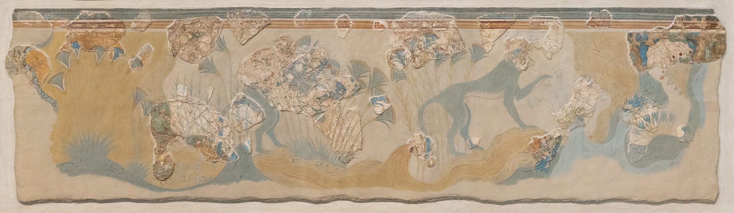 Grass fresco from the Throne Room of the ancient Minoan Palace of Knossos. Image source: Wikimedia Commons (author: Wikimedia Commons user Gsimonov)